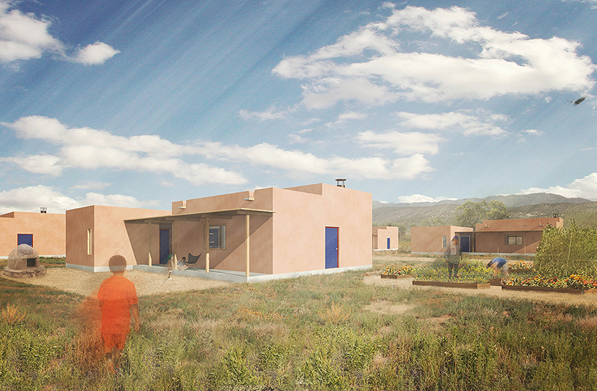 By combining modern compressed earth block manufacturing technologies with traditional earth (adobe) construction methods, the integrity of the community’s architectural identity is maintained while addressing a critical community need for housing within the Pueblo.