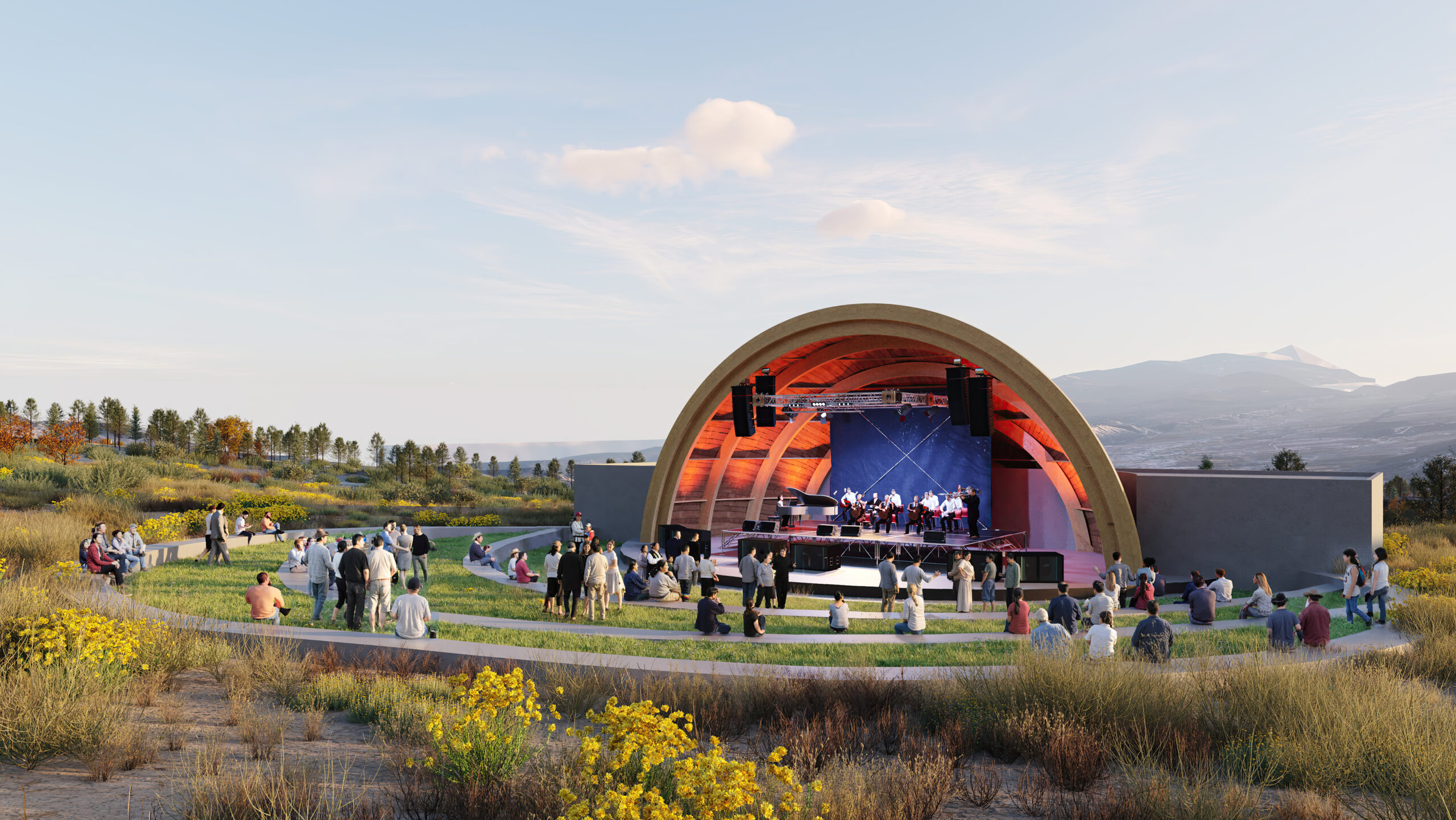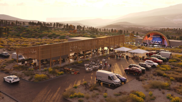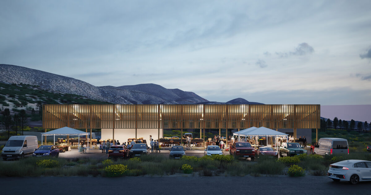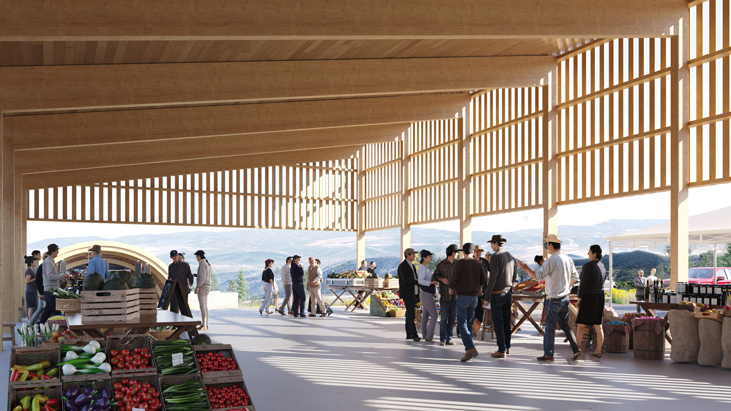 Inside, the spacious market hall includes a demonstration kitchen, storage, and accessible restrooms. Future phases of the project will include an outdoor music amphitheater and a stage for summer concerts.