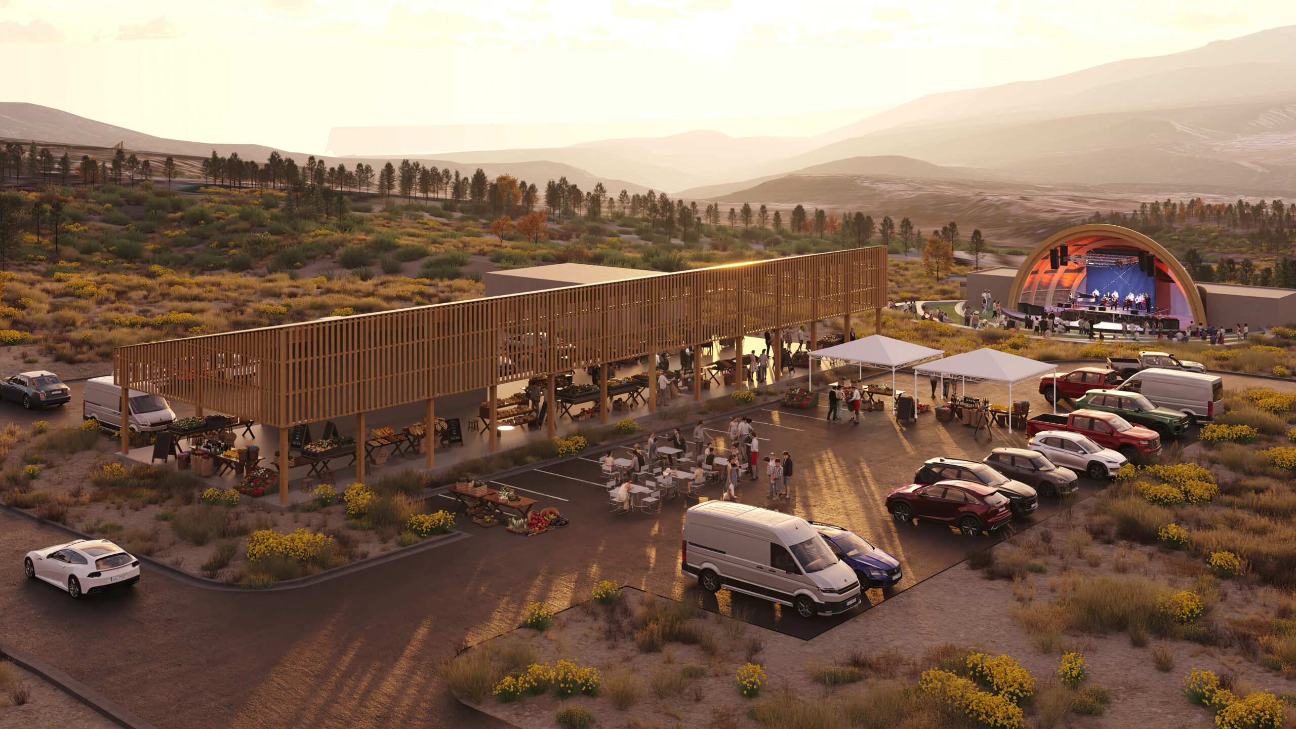 In collaboration with the Picuris Pueblo leadership and community members, our design team balanced local architectural traditions with a contemporary aesthetic. By exploring various farming and agricultural vernaculars, we created a design that emphasizes the simplicity and transparency of a large, open-air barn. This straightforward approach highlights the activity within the mercado and fosters a strong connection between the vendors, community, and surrounding landscape.