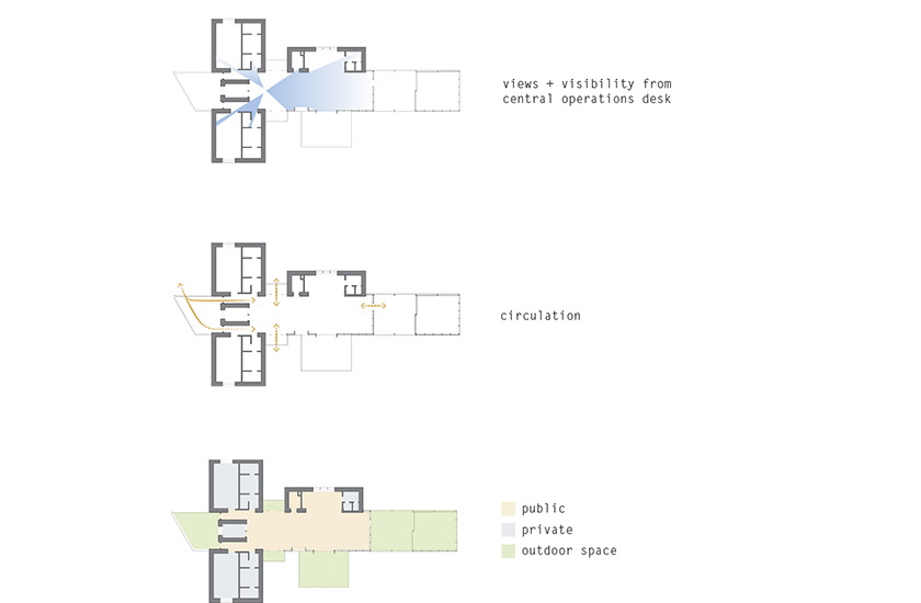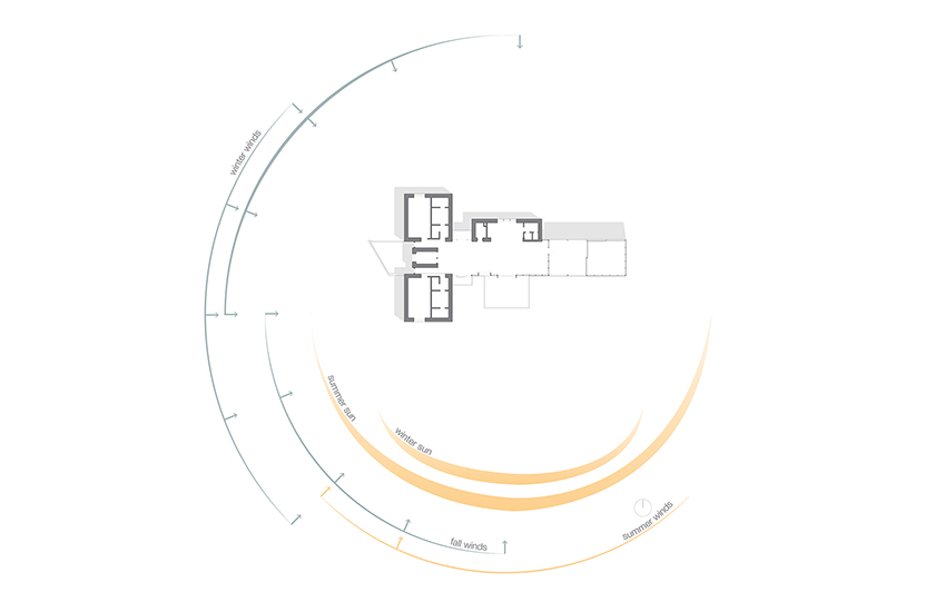 A sense of urgency and desire to grow from the rolling plains of the Pine Ridge Indian Reservation led the design team to consider earth as the generator of an architecture of shelter and protection. Anchored into the earth and reaching towards the sky the building embraces the children and staff with natural materials to engage the senses and lift the spirit. Local labor and limited material transportation lessens the buildings impact on the environment while helping to stimulate the local economy. The rammed earth walls will be constructed from the site soil and the living roofs will contain native grasses minimizing both the visual and environmental impacts on the surrounding landscape.