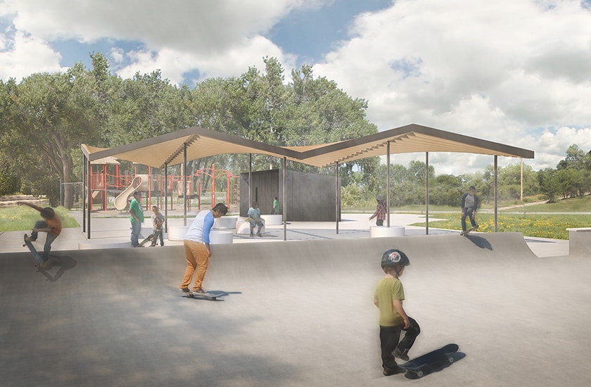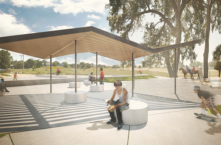 Work WK4-Directions/Toby Eaglebull Memorial Skatepark Pavilion Project WK4-Directions/Toby Eaglebull Memorial Skatepark Pavilion Client: Stronghold Society Location: Pine Ridge, South Dakota Size: 200 SF Bathroom Building and 1000 SF Outdoor Pavilion Completed: Construction Planned for Summer 2016 Tags Community, Native American, Non-Profit, Tribal